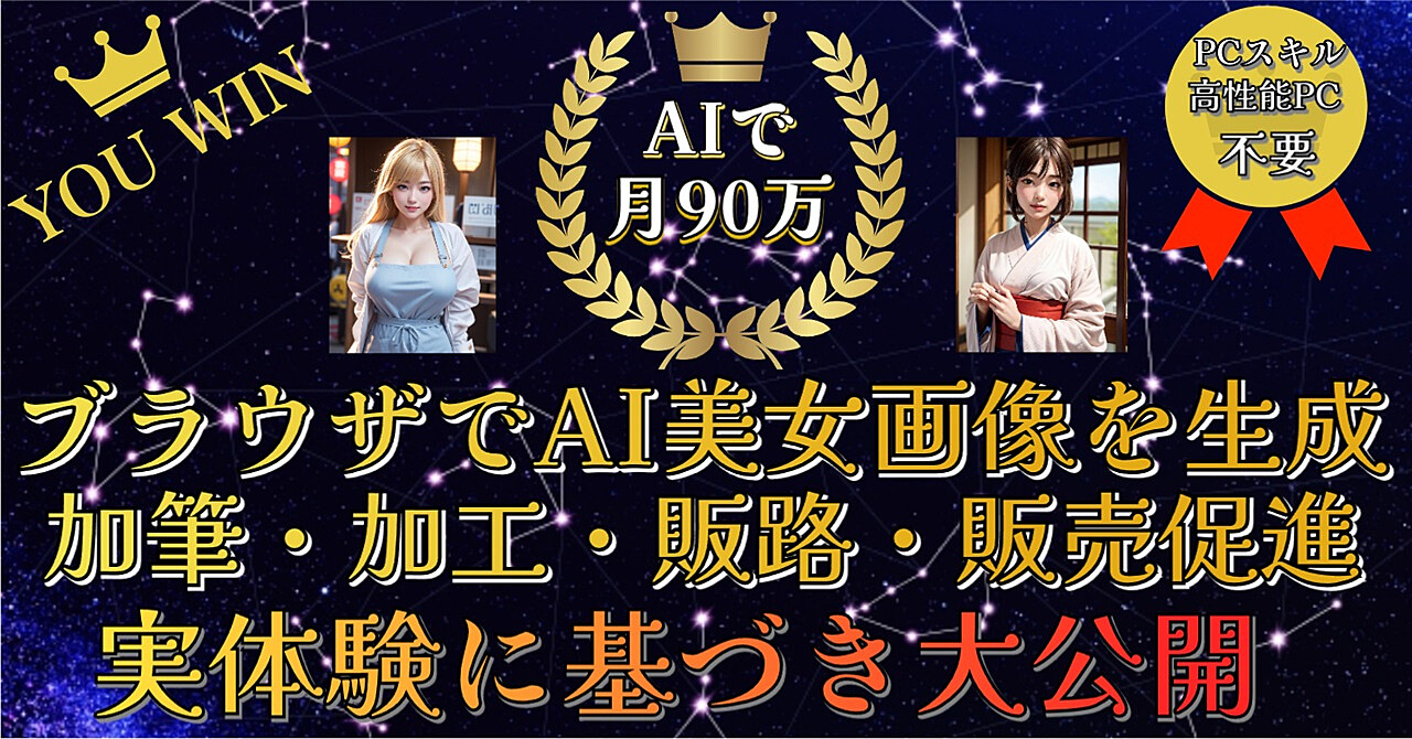 【AIで月90万稼いだ著者が書く】ブラウザでAI美女画像を生成!加筆・加工・販路・販売促進を実体験に基づき大公開