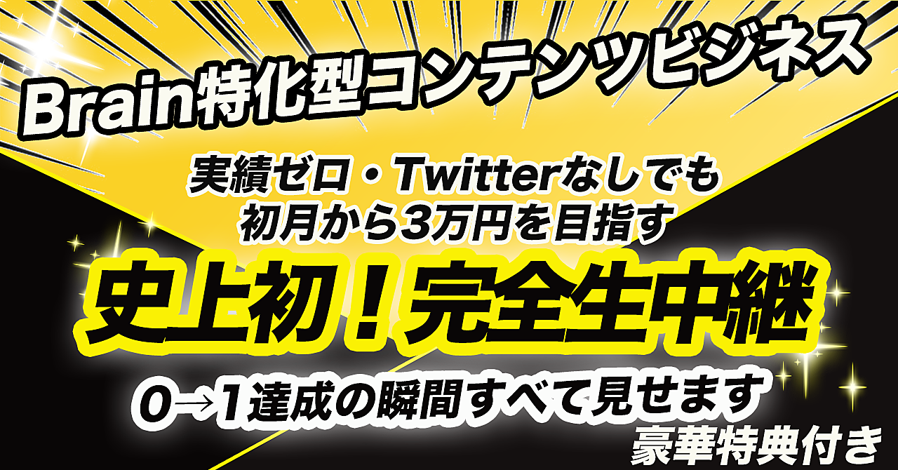 【史上初!0→1達成の瞬間をすべて見せます】Brain特化型コンテンツビジネス